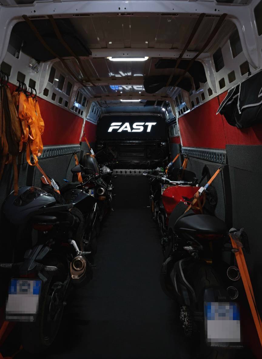 Ogni mezzo è equipaggiato con sistemi specifici per il trasporto moto